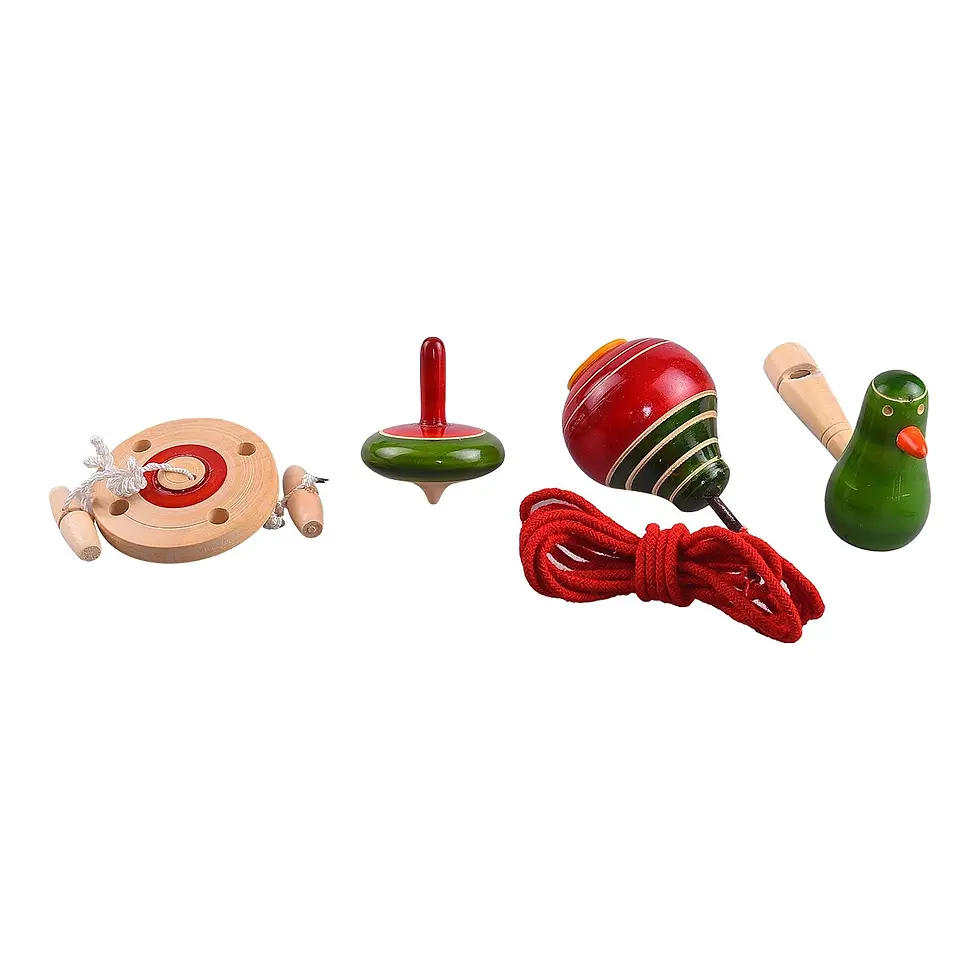 Channapatna Toys Wooden Bird Whistle, Spinner & Spinning Tops